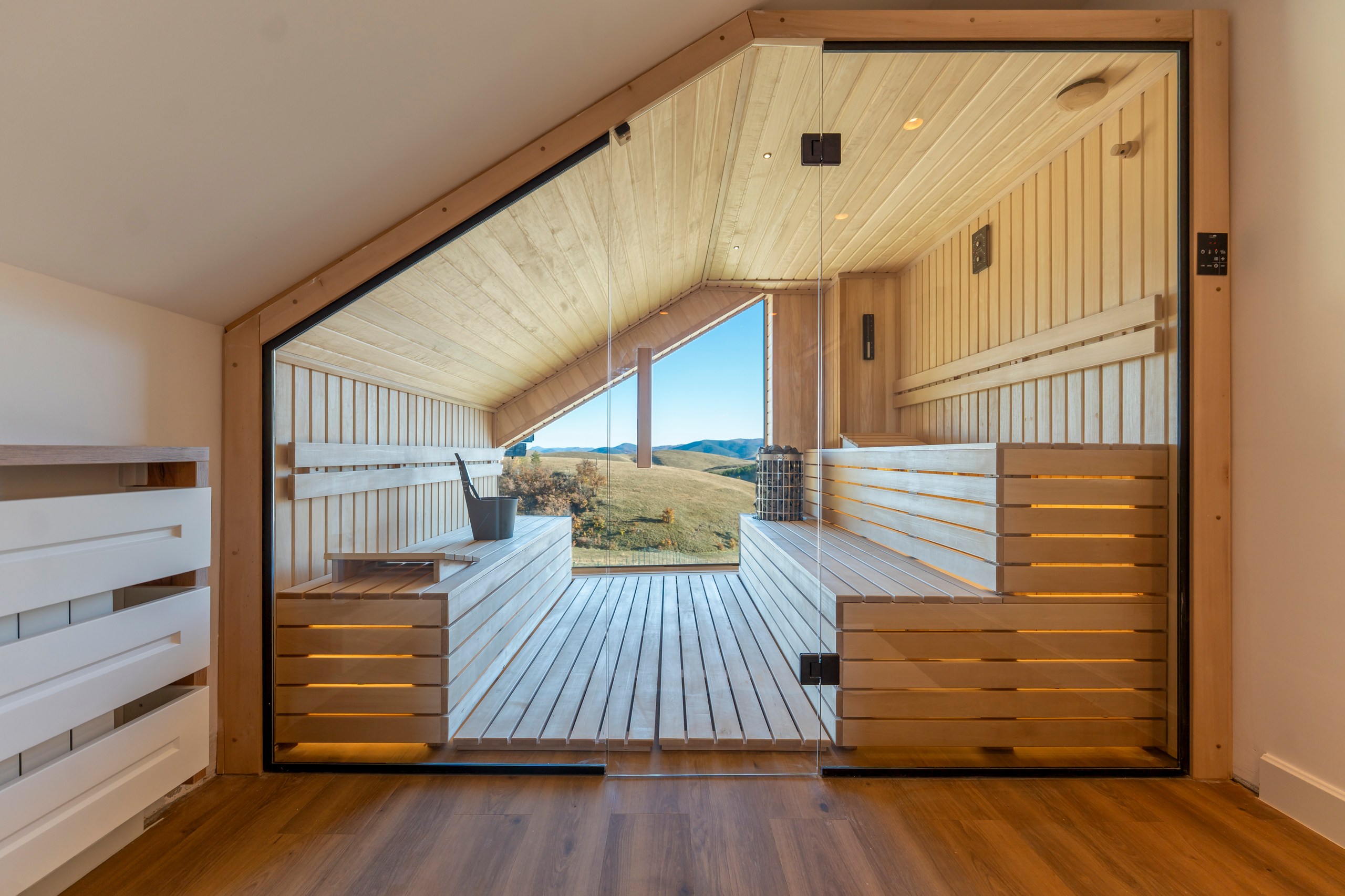 Poseban luksuz predstavlja sauna koja upotpunjuje doživljaj odmora i pruža pravi spa osećaj u okviru samog apartmana. Svaki detalj — od rasvete, nameštaja, dekoracije, do funkcionalnog rasporeda — pažljivo je biran kako bi boravak bio besprekoran.